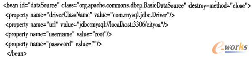 與本地開發(fā)不同的是云計算平臺下,由于服務(wù)器采用虛擬主機技術(shù),無法像本地服務(wù)器那樣配置數(shù)據(jù)庫連接池,因此需要CRM系統(tǒng)自己管理數(shù)據(jù)庫連接池。本系統(tǒng)使用Spring管理下的數(shù)據(jù)庫連接池,運用Apache開源DBCP框架配置連接池代碼如下: