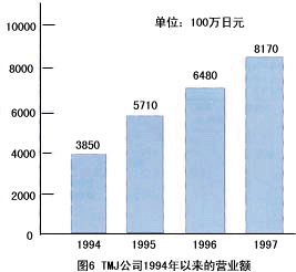 ——該公司成立于1992年,現(xiàn)在是日來第4大電話營銷專業(yè)公司。該公司是從原福武書店的電話中心獨(dú)立出來的。福武書店的”進(jìn)研學(xué)習(xí)會(huì)”(類似于中國的函授大學(xué))在日本全國擁有401萬會(huì)員。對(duì)這些會(huì)員的客戶服務(wù)目前占TMJ業(yè)務(wù)的50%,盡管TMJ成立時(shí)間不長。但由于積極引進(jìn)先進(jìn)技術(shù)(CTI,IVR,ACD,預(yù)撥號(hào))和先進(jìn)的管理方式,發(fā)展非常迅猛。1997年?duì)I業(yè)額達(dá)到81億7千萬日元,總席位有1,500個(gè),外線數(shù)3,00O條,登錄業(yè)務(wù)代表達(dá)4,350人,該公司擁有6個(gè)呼叫中心(東京3個(gè),大販、名古屋、岡山各1個(gè)),每月平均呼入電話63萬個(gè),呼出電話60萬個(gè)。該公司的主要業(yè)務(wù)有:訂購、預(yù)約受理、促銷活動(dòng)、銷售支持、客戶服務(wù)中心,其中面向消費(fèi)者/面向企業(yè)的比例為4∶1。圖6為TMJ公司1994年以來的營業(yè)額。