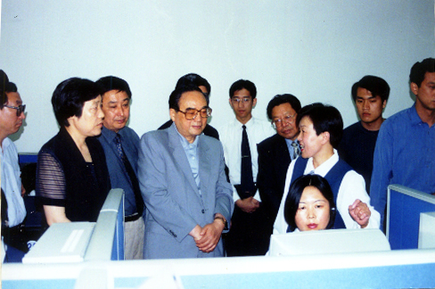 二〇〇一年五月二十六日9:10—10:40 中央書記處書記、中宣部部長丁關(guān)根在省委副書記吳愛英、省宣傳部長王秉聲、市委書記張惠來、市委副書記張旭升等陪同下一行二十人視察96111熱線。