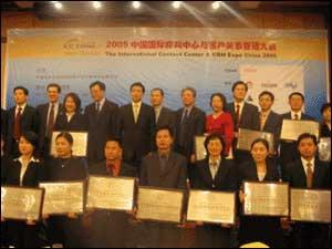 賽迪呼叫榮獲“2005中國最佳外包呼叫中心呼出服務(wù)獎(jiǎng)” (第二排正中)