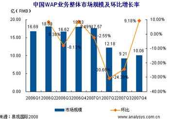 中國WAP業(yè)務(wù)整體市場(chǎng)規(guī)模及環(huán)比增長率