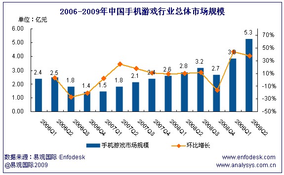 2009年第2季度中國手機游戲市場規(guī)模達5.3億