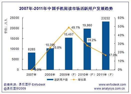易觀預(yù)測(cè):2010年中國手機(jī)閱讀活躍用戶數(shù)將達(dá)2億