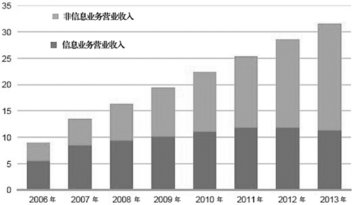 中國(guó)無線數(shù)據(jù)服務(wù)收入展望 單位:10億美元