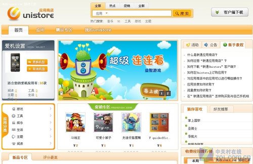 目前聯(lián)通應(yīng)用商店共有1125款應(yīng)用,其中包含445款游戲、208款閱讀、294款主題、生活軟件113款、工具軟件49款,娛樂應(yīng)用16款。目前仍處于測試階段,還沒有應(yīng)用開發(fā)商進(jìn)行大規(guī)模的程序提交。