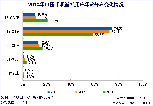 近期易觀國(guó)際、當(dāng)樂網(wǎng)聯(lián)合對(duì)手機(jī)游戲用戶進(jìn)行調(diào)研,推出《中國(guó)手機(jī)游戲用戶研究報(bào)告2010》,從中國(guó)手機(jī)游戲用戶結(jié)構(gòu)特征和用戶行為方面分析手機(jī)游戲產(chǎn)業(yè)發(fā)展三大空間: