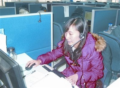 圖:1月12日,國(guó)壽財(cái)險(xiǎn)電子營(yíng)銷中心工作人員在接聽(tīng)電話。