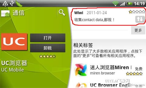 目前,很多手機(jī)社交應(yīng)用中加入了對(duì)用戶關(guān)系的抓取,這些應(yīng)用在用戶需要尋求社交關(guān)系時(shí),將讀取用戶通訊錄中的信息,并進(jìn)行自動(dòng)匹配。其中包括手機(jī)廠商HTC的HTCSENSE,UCWEB中的UC樂園,以及最近火熱的kik類應(yīng)用,如KikMessenger,米聊、微信等。多數(shù)用戶表示對(duì)于此種抓取通訊錄的行為表示疑慮。