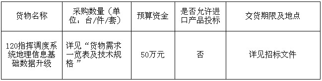 項(xiàng)目名稱:120指揮調(diào)度系統(tǒng)地理信息基礎(chǔ)數(shù)據(jù)升級(jí)采購(gòu)項(xiàng)目