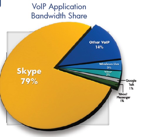 總體來看,VOIP和即時通信市場生機勃勃,涌現(xiàn)出很多新應(yīng)用。2011年下半年,Skype占據(jù)了全球移動VOIP流量的79%,盡管是仍是voip市場的老大,但Skype的流量份額已經(jīng)比2011上半年的82%有所減少。面臨著新的進入者如Viber、ooVoo,Tango和其他應(yīng)用的挑戰(zhàn)。