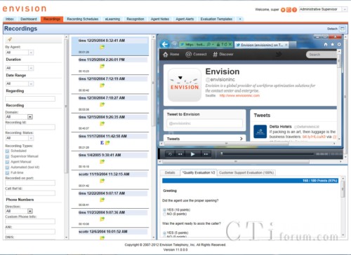 Envision Centricity是公司完整的WFO套件,對呼叫中心座席和企業(yè)層面的數據和績效進行收集、監(jiān)控和分析。它是由多個應用程序組成,包括用于排班、調度和人員配備的Envision Workforce Managemen,質量監(jiān)控、身份識別和兼容;座席績效改善的Click2Coach,公司結合質量監(jiān)控和在線學習,能夠提供有針對性的輔導。