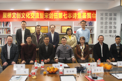 12月28日,聚橋文創(chuàng)文化交流暨宋劍伍第七本詩集鑒賞會在廣州天河召開,本次活動為首屆廣東中華優(yōu)秀傳統(tǒng)文化節(jié)系列活動之一,由廣東省傳統(tǒng)文化促進會、廣州聚橋文創(chuàng)、廣州市愛國為民文化信息傳播有限公司聯(lián)合主辦。廣東省文聯(lián)副秘書長、省文藝評論家協(xié)會專職副主席梁少鋒,廣東省傳統(tǒng)文化促進會會長李世玉,深圳城投集團執(zhí)行總裁安菲佳,廣東省傳統(tǒng)文化促進會林啟明、吳彬、一凡、徐波博士,聚橋文創(chuàng)總經理、廣東省傳統(tǒng)文化促進會常務理事鄒橋華,青麥源集團董事長王錫光,商業(yè)戰(zhàn)略分析師、詩人宋劍伍,廣東金咨貓總經理陳錫文等參加本次活動。正皓集團董事長潘堅發(fā)來活動祝賀信,并表示集團將在2024年和廣東省傳統(tǒng)文化促進會及詩人宋劍伍在品牌文化上有更深度的合作。