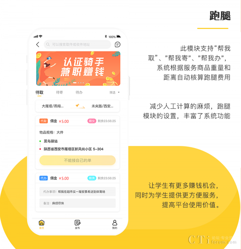 大家都知道,大學(xué)校園人群密集,很多大學(xué)的在校學(xué)生高達(dá)幾萬(wàn)人,且大學(xué)生消費(fèi)力和消費(fèi)意愿均遠(yuǎn)高于一般人群,同時(shí)大學(xué)生代取快遞、代送外賣、代簽到等服務(wù)的需求很大,大學(xué)的跑腿服務(wù)市場(chǎng)是很大的。校園創(chuàng)業(yè)不僅需求旺盛,同時(shí)商家和用戶都有著高度聚集的特點(diǎn),針對(duì)校園學(xué)生群體,做校園外賣平臺(tái)值得推行。