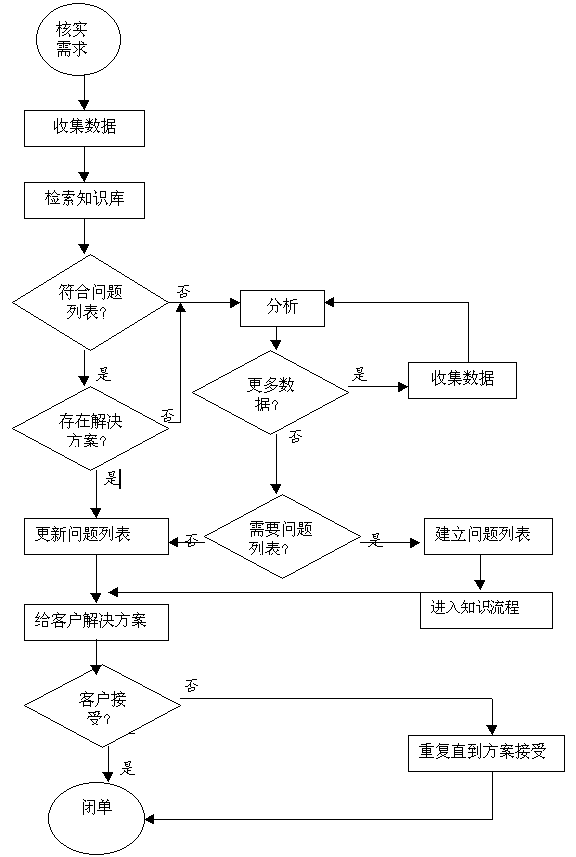 ----在呼叫中心中,面對客戶的流程主要有三大類:核實(shí)流程,服務(wù)實(shí)現(xiàn)流程和知識(shí)流程。我將三個(gè)典型的流程圖列出并希望能夠省略文字解釋的篇幅。根據(jù)業(yè)務(wù)類別的不同,圍繞著主要流程還可以有許多子流程。如在銷售型呼叫中心中服務(wù)實(shí)現(xiàn)流程中就可能會(huì)銷售線索派送跟蹤流程和立即銷售流程等。而在立即銷售流程中可能又會(huì)有付款收費(fèi)流程的等。