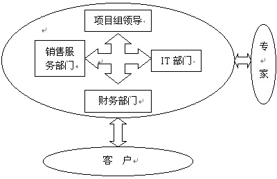 CRM項(xiàng)目小組由公司內(nèi)部各部門及外部人員共同組成。一般來講,項(xiàng)目小組應(yīng)該包括高層領(lǐng)導(dǎo)(一般為副總)、銷售和營(yíng)銷部門的人員、IT部門的人員、財(cái)務(wù)人員,還要包括所有最終用戶的代言人。他們作為CRM系統(tǒng)實(shí)施的輸入部分。