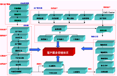 稱之為"體系"主要體現(xiàn)在以下方面:跨越和涉及房地產售前、售中、售后完整階段的各個部門