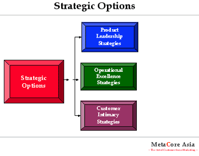 在Treacy,Michael和Fred Wiersema所著的一本名為The Discipline of Market Leaders 的書中說到:企業(yè)組織有三種主要的策略選擇,即:以產(chǎn)品為主導(dǎo),出色的運(yùn)營(yíng)和客戶親善,該書由Addison-Wesley NY出版于1995年。