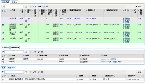 對于企業(yè)中每個業(yè)務(wù)人員每天要完成的活動可以用圖表進(jìn)行量化表示,即以周為單位,監(jiān)控團(tuán)隊(duì)中每個人工作情況的活動儀表盤。同時,也可以生成Excel格式的報表,分別為本周已完成和下周計(jì)劃完成的活動報表。