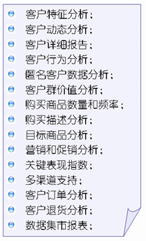 IQ等主流數(shù)據(jù)倉庫系統(tǒng)的無縫銜接,實現(xiàn)了CRM最核心的價值——多維度的客戶分析,從而在技術(shù)上和應(yīng)用上遠遠超越了傳統(tǒng)的CRM。