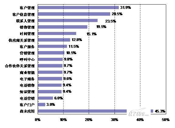 與2006年相比CRM市場(chǎng)前景依然廣闊,企業(yè)應(yīng)用依然集中在客戶(hù)管理,客戶(hù)信息管理,聯(lián)系人管理等主要的應(yīng)用領(lǐng)域,品牌認(rèn)知度上,與2006年的數(shù)據(jù)沒(méi)有太大的變動(dòng)。