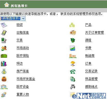 在選擇模塊的時(shí)候,如上圖所示,只要點(diǎn)擊“所有選項(xiàng)卡”,幾百個(gè)具體的模塊選項(xiàng)卡就都可供選擇了,對于醫(yī)院來講,很容易就能選擇到所有適合自己的功能模塊。