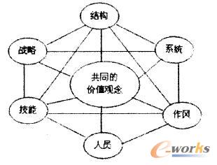 按照麥肯錫以及科特勒的綜合觀點,前面三個要素——戰(zhàn)略、結構和系統(tǒng)被認為是最成功的硬S;后面四個要素——作風、人員、技能和共同的價值觀念是軟S。每個組織都和總體環(huán)境的某個部分相互影響,相互作用,并且把這一部分成為相關環(huán)境并指出最能適應環(huán)境的公司必將獲得成功。