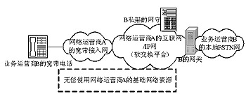 再次,VoIP低廉的價(jià)格除了其自身成本的優(yōu)勢(shì)外還有更深層的東西,那就是傳統(tǒng)的電信網(wǎng)間結(jié)算體系的缺陷。還是上面的例子,業(yè)務(wù)運(yùn)營(yíng)商B的VoIP可以“落地”到自己服務(wù)區(qū)域內(nèi)的PSTN網(wǎng)上,然后通過(guò)自己的長(zhǎng)途電話網(wǎng)傳送語(yǔ)音,最后與其他電信運(yùn)營(yíng)商的PSTN本地網(wǎng)進(jìn)行互聯(lián)來(lái)完成一次長(zhǎng)途通話過(guò)程。這也是國(guó)內(nèi)沒(méi)有本地網(wǎng)資源的運(yùn)營(yíng)商經(jīng)營(yíng)VoIP業(yè)務(wù)最常用的一種做法(通常這被作為新興運(yùn)營(yíng)商大舉搶占主導(dǎo)固網(wǎng)運(yùn)營(yíng)商市場(chǎng)的有效手段如圖2所示)。由于本地接入費(fèi)僅為0.06元/分鐘,因此只要業(yè)務(wù)運(yùn)營(yíng)商B只要將VoIP的價(jià)格設(shè)為0.07元/分鐘,在長(zhǎng)途電話網(wǎng)傳輸成本很低的情況下,他也可以實(shí)現(xiàn)盈利。從這個(gè)角度我們可以看出,VoIP的低資費(fèi)從根本上看可以說(shuō)是現(xiàn)行電話網(wǎng)網(wǎng)間結(jié)算費(fèi)過(guò)低造成的,是以“犧牲”本地網(wǎng)電信運(yùn)營(yíng)商的利益為代價(jià)而換來(lái)的,此網(wǎng)間結(jié)算機(jī)制勢(shì)必造成沒(méi)有本地網(wǎng)資源的虛擬運(yùn)營(yíng)商可以近乎無(wú)償?shù)卣加兄鲗?dǎo)運(yùn)營(yíng)商的Metcalfe價(jià)值,甚至可以借此進(jìn)行惡性價(jià)格戰(zhàn)來(lái)?yè)寠Z主導(dǎo)網(wǎng)絡(luò)運(yùn)營(yíng)商的用戶及收入,這樣必然會(huì)使主導(dǎo)網(wǎng)絡(luò)運(yùn)營(yíng)商在沒(méi)有積極性投入本地網(wǎng)建設(shè)和互聯(lián)網(wǎng)建設(shè)的同時(shí),對(duì)網(wǎng)間互聯(lián)設(shè)置種種障礙,結(jié)果無(wú)疑會(huì)導(dǎo)致整個(gè)VoIP產(chǎn)業(yè)的惡性發(fā)展。