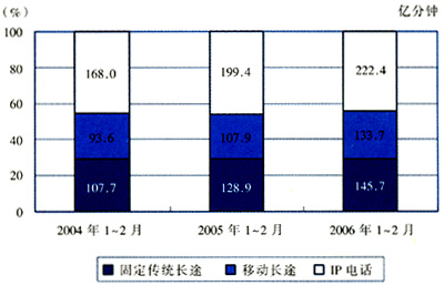 圖1 2006年1-2月的電信業(yè)務(wù)收入構(gòu)成