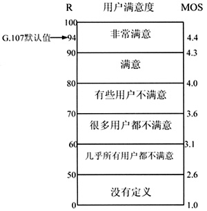 在E-Model測量中包含了影響窄帶電話通話質量的多種傳輸參數(shù),在ITU-T G.107中提供了一組默認值,當終端和應用環(huán)境是正常的,可以直接使用這些默認值。根據(jù)這些默認值和一些可求的參數(shù)比如延時、丟包率等可以得到E-Model輸出的傳輸參數(shù)R。R直越大,說明語音質量越好,R值的范圍是0-100,0是最差的,100是最好的。