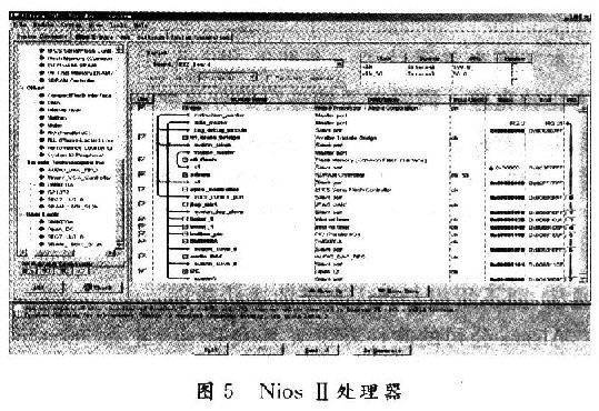 SOPC系統(tǒng)的平臺包括:Altera的Nios處理器、Aval—on總線,片內(nèi)外存儲器以及外設(shè)模塊等。利用SOPCBuilder,用戶可以很方便地將處理器、存儲器和其他外設(shè)模塊連接起來,形成一個完整的系統(tǒng)。其中,SOPC