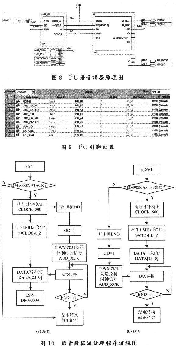 由于語音編解碼器的處理延時是影響VoIP話音質(zhì)量的因素之一,為了保證語音編解碼的實(shí)時性,軟件系統(tǒng)在控制WM8731編解碼器的編解碼同時,加入了I2C語音模塊,以實(shí)現(xiàn)語音數(shù)據(jù)的實(shí)時處理。它采用自頂向下設(shè)計(jì)方法利用QuartusⅡ進(jìn)行設(shè)計(jì)。