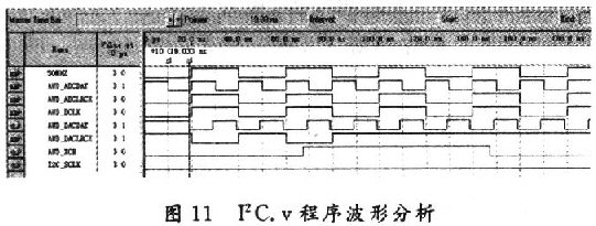 AUD_ADCDAT與AUD_DACDAT分別為I2C總線的輸入輸出,由圖11中可見其延遲為9.033 ns,實(shí)現(xiàn)了語音數(shù)據(jù)的實(shí)時處理。