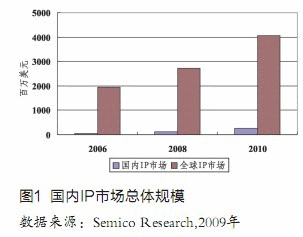 中國是全球最大的半導(dǎo)體市場之一,但是相對應(yīng)的中國集成電路IP(知識(shí)產(chǎn)權(quán))市場只有5610萬美元,僅為全球市場的2.8%,仍屬于起步階段。根據(jù)Semico Research的分析,到2010年中國IP市場將增長到2.47億美元,占全球市場的6%,年均增長率高達(dá)44.9%,遠(yuǎn)超過全球IP市場的18.3%的增長率(見圖1)。