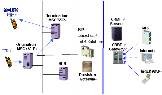 CRBT RIP應(yīng)答主叫端局的呼叫并根據(jù)主、被叫播放定制的回鈴音; 。。7. 主叫端局搭通主叫到彩鈴RIP之間的話路,主叫聽(tīng)到彩鈴; 。。8.