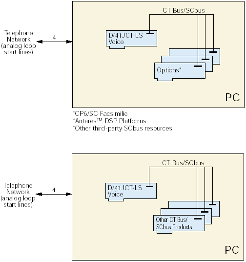 D/41JCT-LS板卡可以工作在包含Dialogic PCI和ISA產(chǎn)品的混合機(jī)箱中, D/41JCT-LS板卡的超前設(shè)計(jì)遵循新的H.100總線規(guī)范,并且能夠同下一代CT總線產(chǎn)品通信。D/41JCT-LS也可以通過選配部件CT總線/SC總線適配器與現(xiàn)存的SC總線產(chǎn)品相連。適配器提供同時連接D/41JCT-LS板卡和當(dāng)前SC總線產(chǎn)品的SC總線接頭和H.100物理接頭。