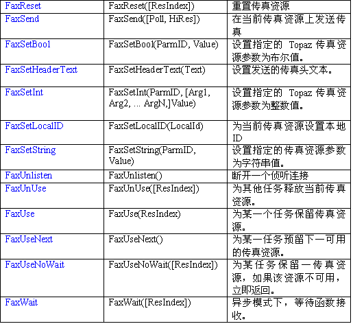 必須注意傳真資源只能收發(fā)傳真數(shù)據,所有其他需要呼出或呼入電話的操作應由中繼資源或媒體資源完成。