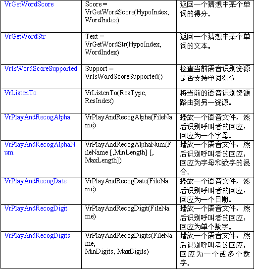 語音識別資源把呼叫者的語音轉變?yōu)槲谋咀址。一個VR資源可以對一個語音流數(shù)據(來自一中繼或會議資源)進行識別。