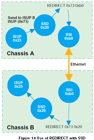 運(yùn)行在信令卡上的協(xié)議模塊,接收端(對方)的REDIRECT語句應(yīng)該通過ssd或ssd的驅(qū)動(dòng)(通常情況下使用module_id為0x20)來對消息進(jìn)行重定向,如圖14所示。