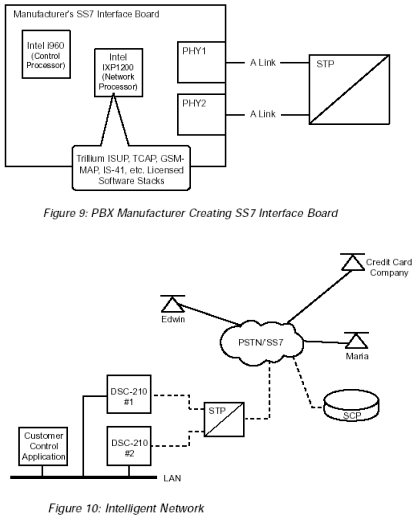 Dialogic提供一個(gè)模擬器,這是一個(gè)開放的結(jié)構(gòu)用來建立功能性的、可靠的、節(jié)約成本的公共網(wǎng)絡(luò)應(yīng)用和服務(wù)。此外,Dialogic SS7產(chǎn)品可以被用來建立SS7網(wǎng)絡(luò)元素(NEs)和高級(jí)智能網(wǎng)絡(luò)(AIN)平臺(tái),比如: